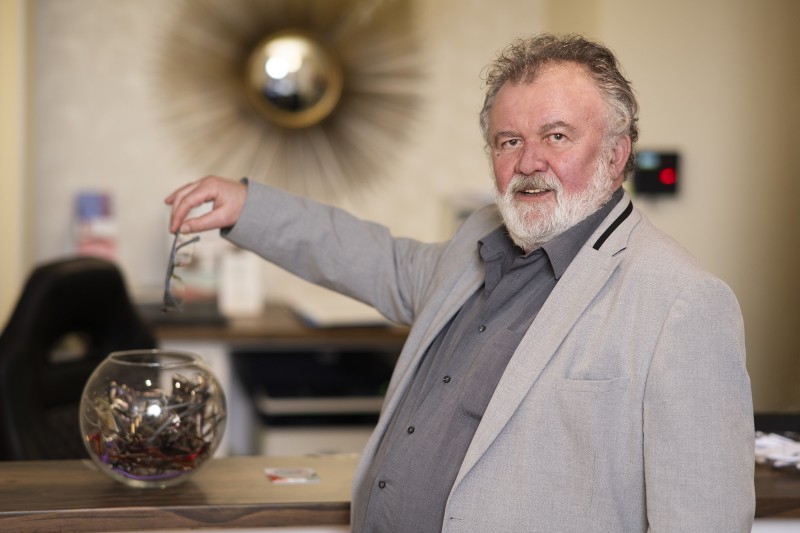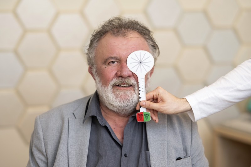 A Saint James Szemészeti központ főorvosa, dr. Perényi Kristóf (fenti képen) tovább növelte a művész elszántságát, amikor elárulta neki, hogy a lencsebeültetéssel nemcsak a további látásromlást, de az olyan korral járó szembetegségeket is elkerülheti, mint a szürkehályog.